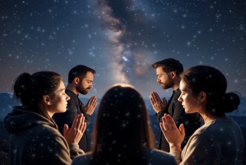 Eran cerca de las 12:00 pm cuando nuestro líder dijo: nuestros Guías Espirituales me informan que, en esta ocasión y a niveles etéreos, estamos reunidos muchos hermanos de luz para pedir por la mejora de la situación de los seres de amor de la Tierra. Al iniciar el rezo, con voz cortada, Ramavajan dijo: le pedimos a Dios que, con esta oración, nos dé a todos los seres reunidos hoy: fe, fuerza, alegría y esperanza, para que podamos salir avantes en este 2015.